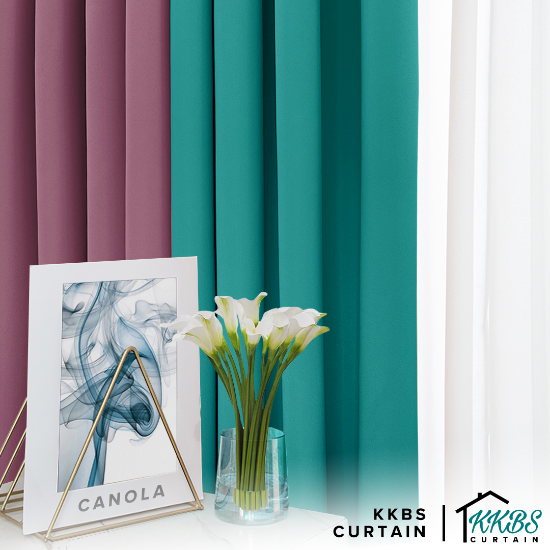Two-colour combination curtains occur using two methods. The first choice is a combination of contrasts that are more suitable for people who like to be creative and unique for example combine using Canola Jade Blue & Blush Pink