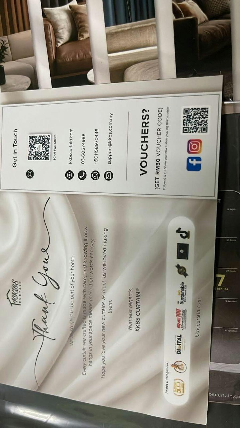 Nur HidayahBeli langsir di tiktok. Sangat berpuas hati dengan material dan harga serta servis. Saya nak tukar langsir. Perkhidmatan pelanggan sangat baik dan cepat bertindak. Syorkan beli lagi di kkbs☺️